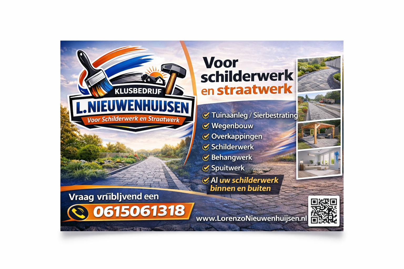 Bij Klusbedrijf Nieuwenhuijsen begint uw droomproject. Wij staan bekend om betrouwbaar vakwerk in grond-, straat- en allround schilderwerk. Met heldere communicatie en duidelijke prijsafspraken zorgen wij voor een zorgeloze realisatie. Sluit u aan bij onze tevreden klantenkring en ervaar het verschil.